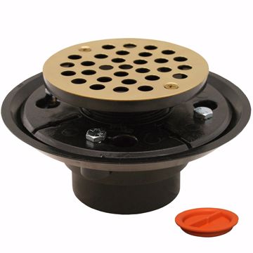2" x 3" ABS Shower Drain with 2" Metal Spud and 4" Round Polished Brass Cast Strainer with Grout Ring